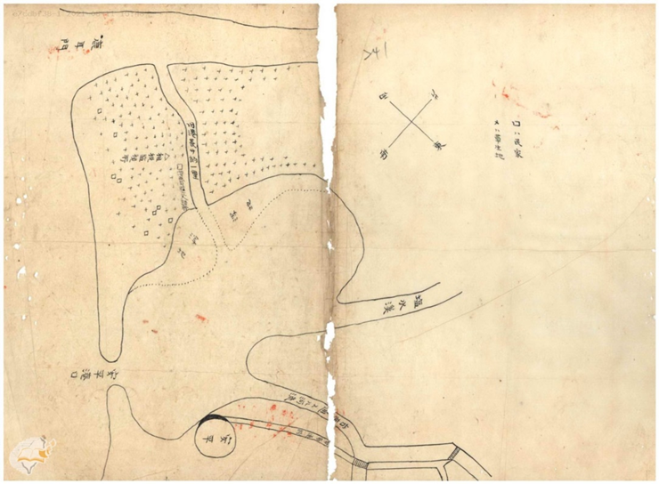 圖3、日治初期三郊五美堂黃壽南所提修浚河道文件之手繪附圖